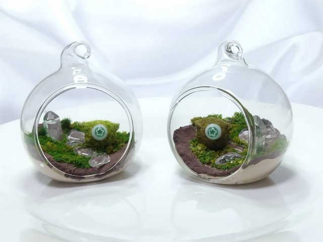 癒し系の苔玉メンダーが 今年はテラリウムバージョンも!! 約6cmのガラスに 苔玉メンダーがひっそりと住み着いています( *´艸`) 水やりの不要!!枯れることのないテラリウムで 癒されてみてください(●´ω`●) キラリと光る、水晶入り! ※オプションで 苔玉メンダーの色をお選びください。 1枚目写真で 左が 明るい緑 右が 濃い緑 です。 ※ガラス製品の為、取扱いにご注意ください。