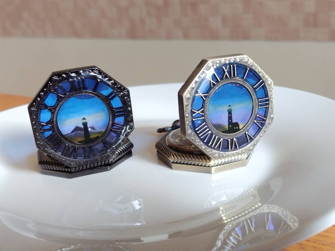 粉の蓄光の使用して 灯台の灯りを表現しています。